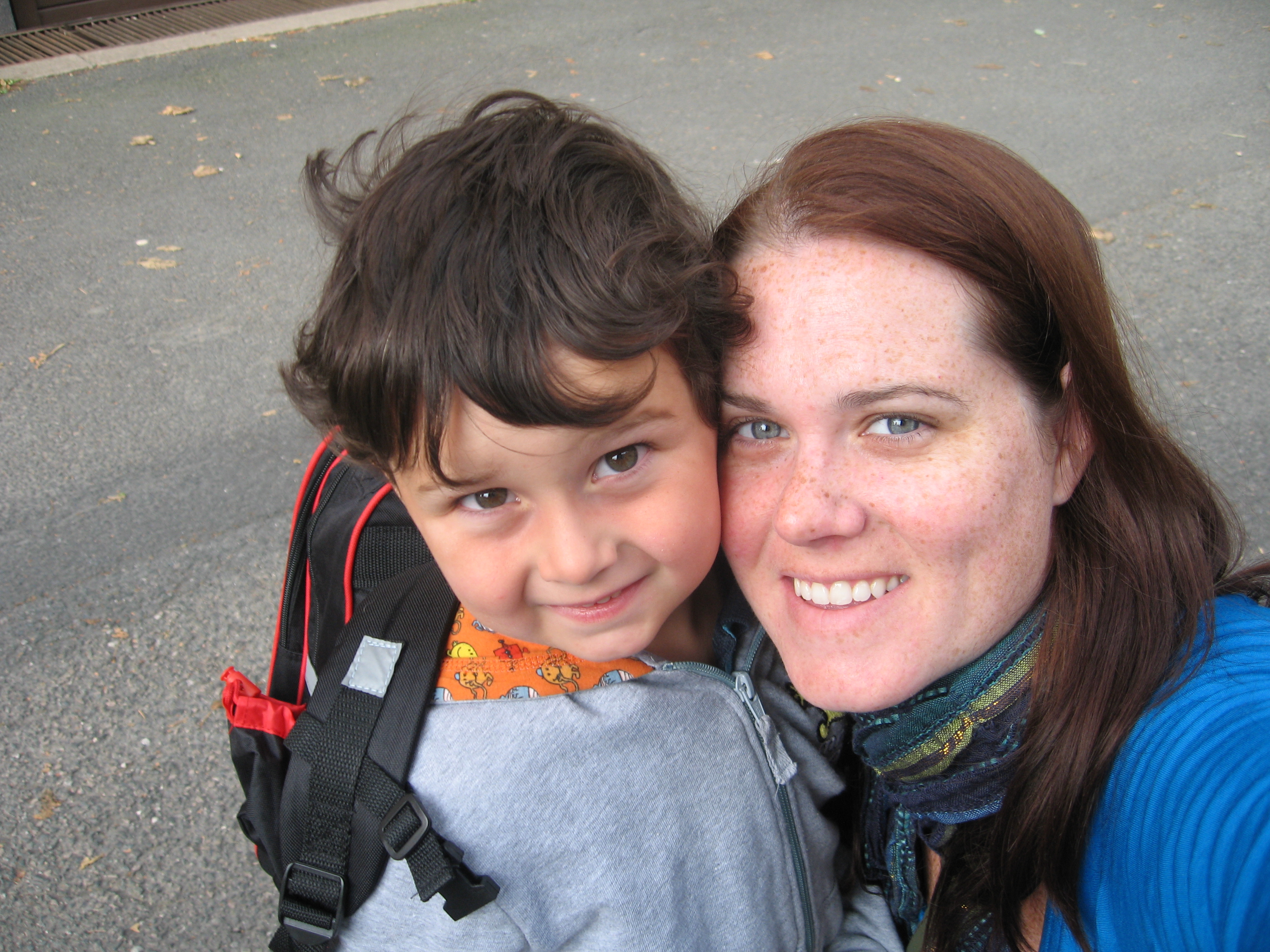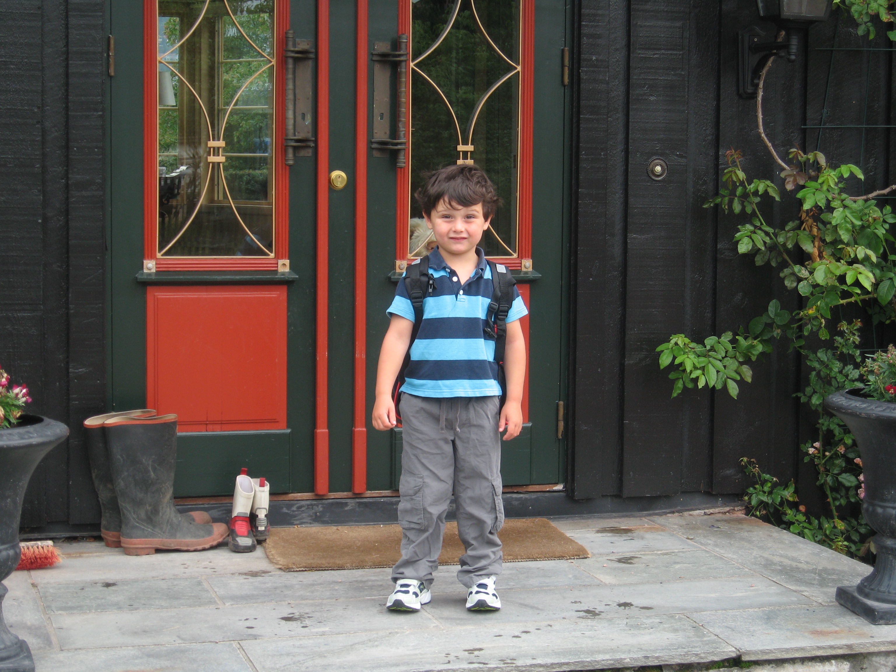 What is supposed to be a significant day really started like all the others, with one exception: I woke him up. We lay in his bed, a dull light entering his window. “I dreamed about Lightning,” he says. “Are you ready for school?” I ask the umpteenth time this week. “Yeah, sure,” he replies in his squeaky little voice. Hair sticking up at all ends since we chopped it to repair mommy’s poor attempt at a trim. He looks like a little boy this morning. A proper boy who terrorizes little girls and digs up worms in the garden and wants to play soccer. I get two pieces of toast down him, and he behaves himself at the table while I rush upstairs to throw something on. Don’t want to look like a slob in comparison with the French mamans or the Norwegian mødre. Long skinny jeans, baby doll top, ubiquitous scarf slung around my neck.